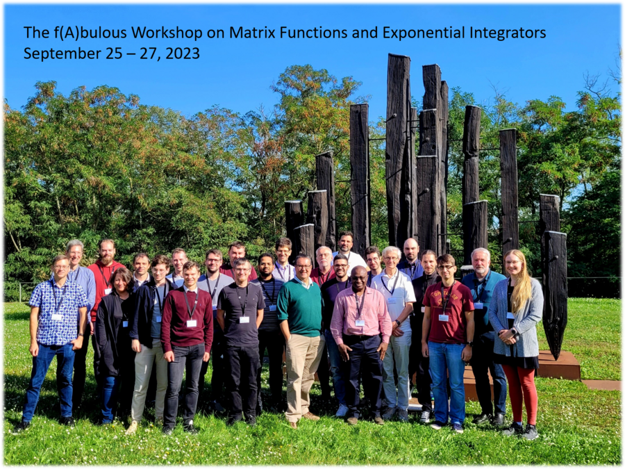 The fully in-person workshop featured plenary lectures by experts in f(A)b and exponential integrators, as well as ample discussion sessions, in a non-traditional format. The workshop presented an exciting mixture of contributions from international established senior scientists as well as from early career researchers.